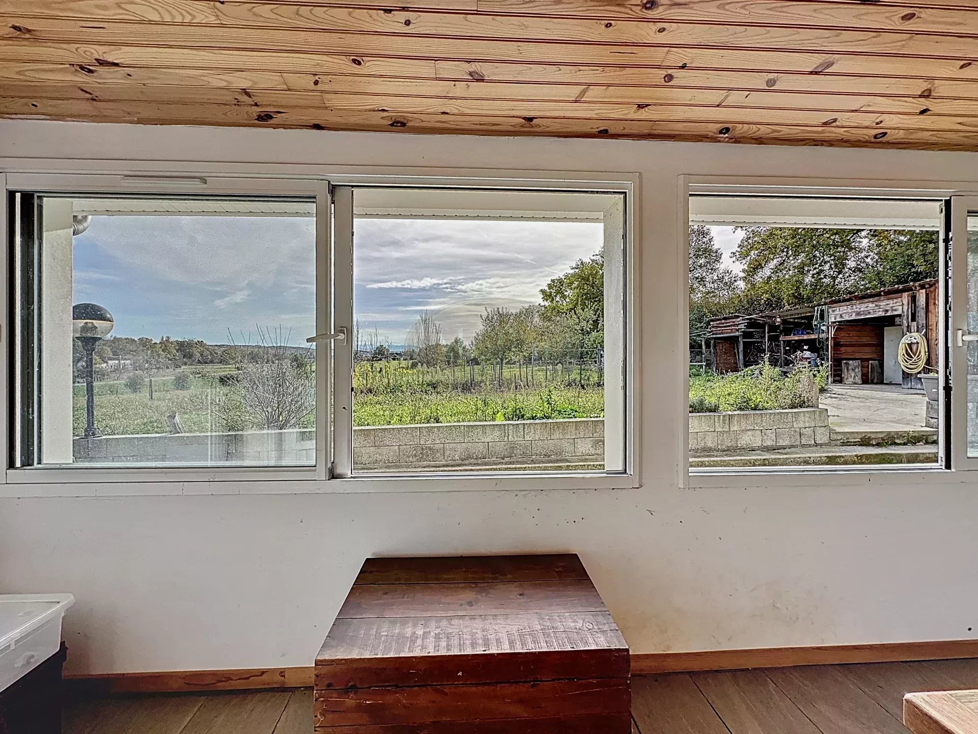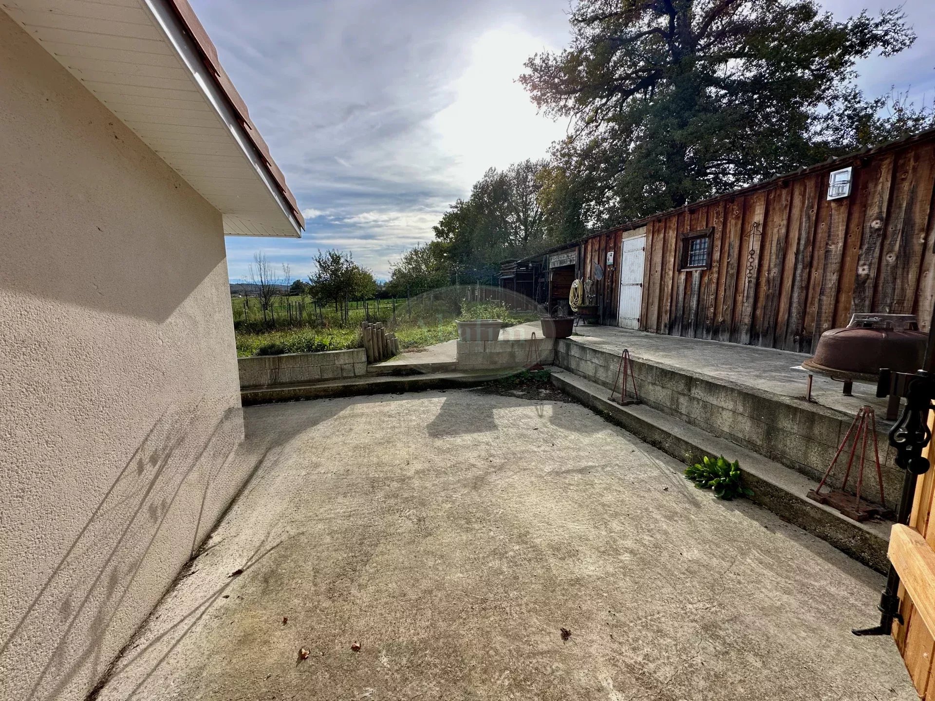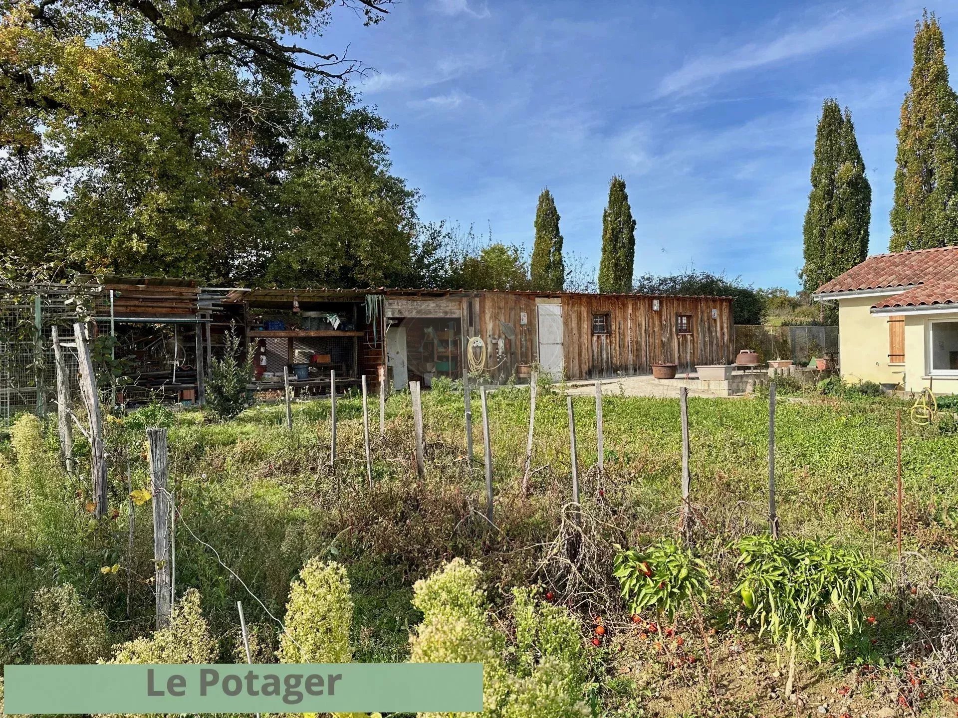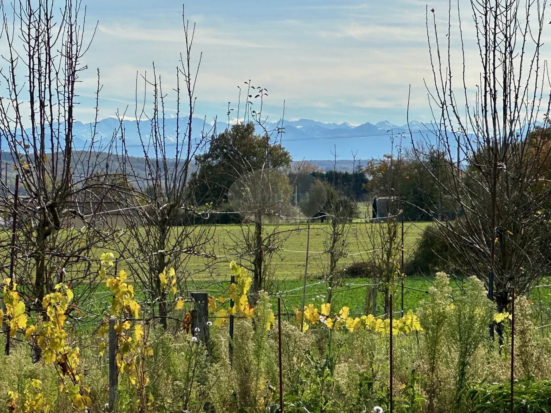 Es bietet Ihnen einen schönen Blick auf die Pyrenäen. Gartenhaus und Werkstatt, Grundstück mit Bäumen und Blumen von 4200 m2.