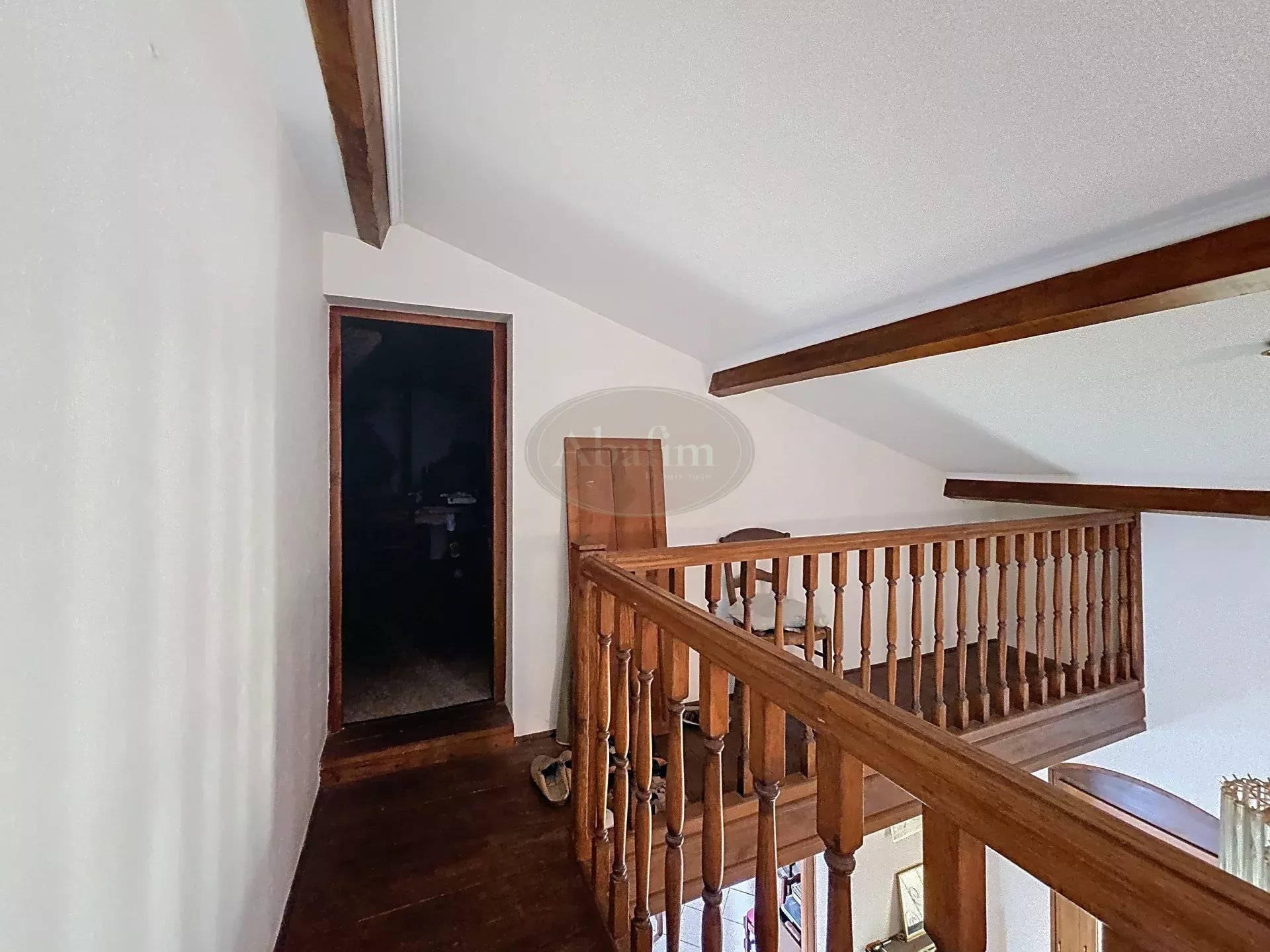 De vuelta al vestíbulo, una bonita escalera de madera conduce a la primera planta. Una galería y un pasillo conducen a este nivel.