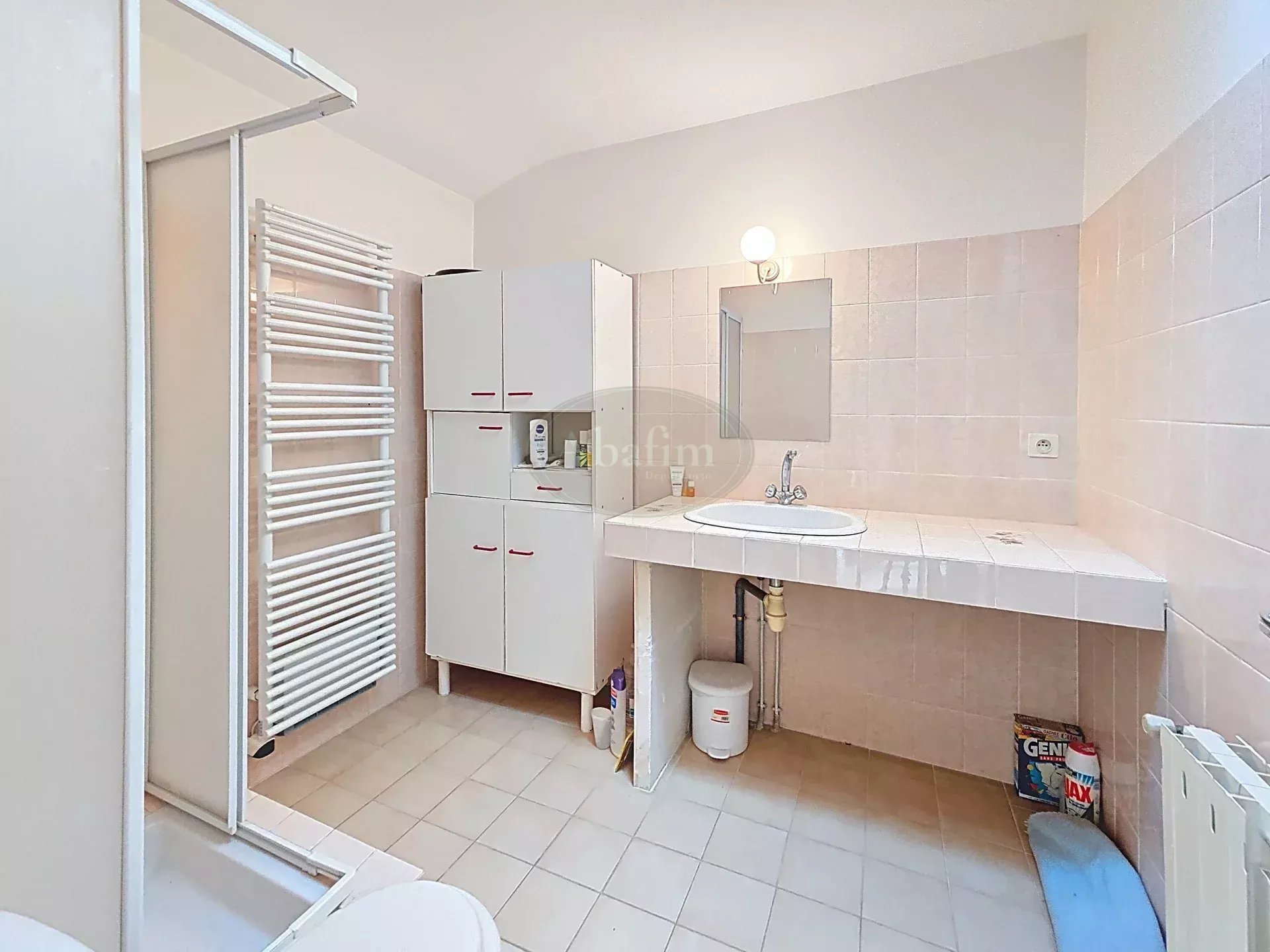 Un pasillo conduce al 1er dormitorio (14 m²) que incluye un cuarto de ducha (1,86 m²) con ducha y lavabo.