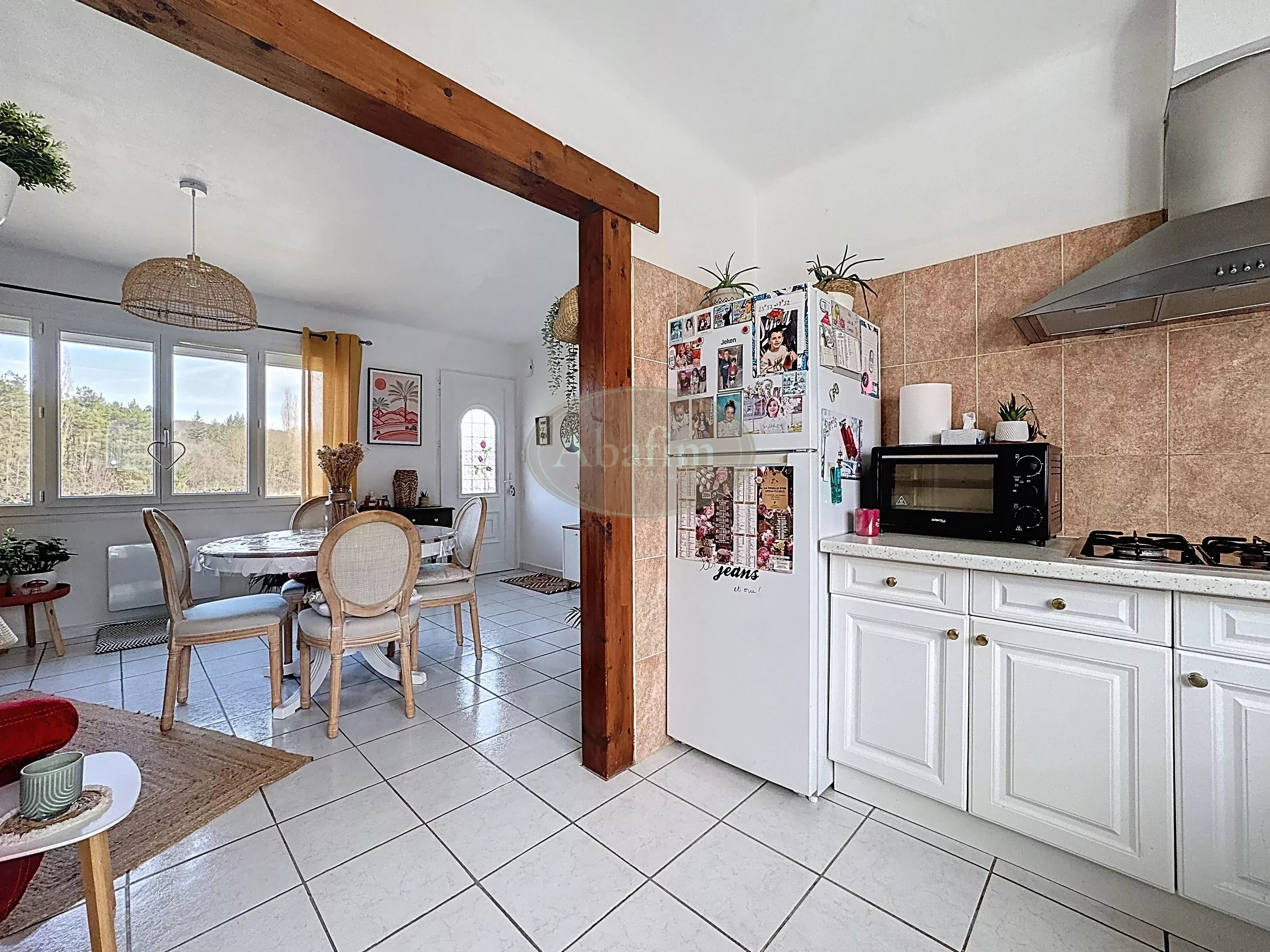 Una vez a través de la puerta principal, se entra en un pasillo que conduce a una sala de estar luminosa a la derecha. La cocina americana tiene un montón de espacio en el armario y una agradable vista de las colinas.