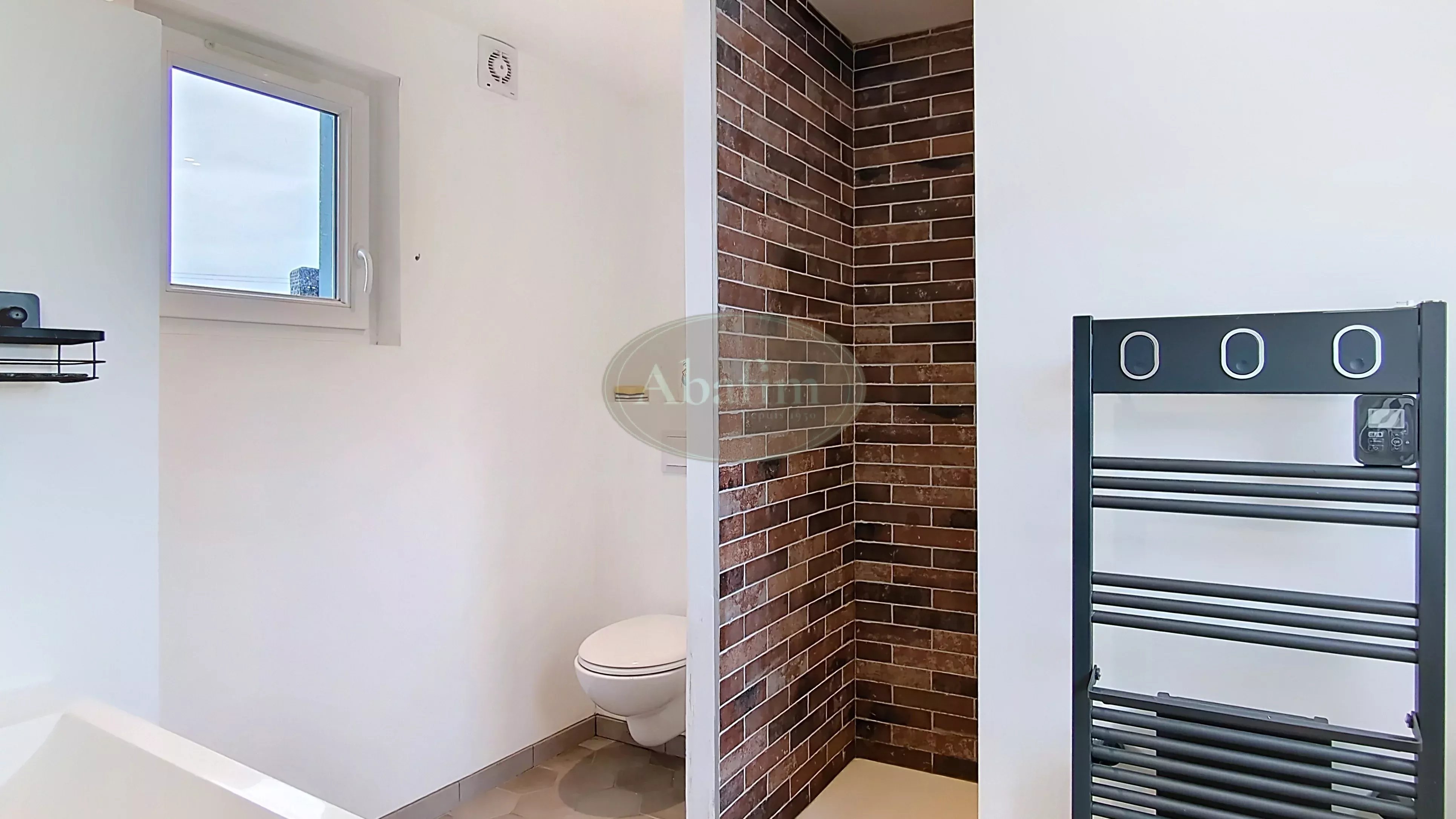 À proximité se trouve une salle d’eau avec WC, faisant également office de buanderie.