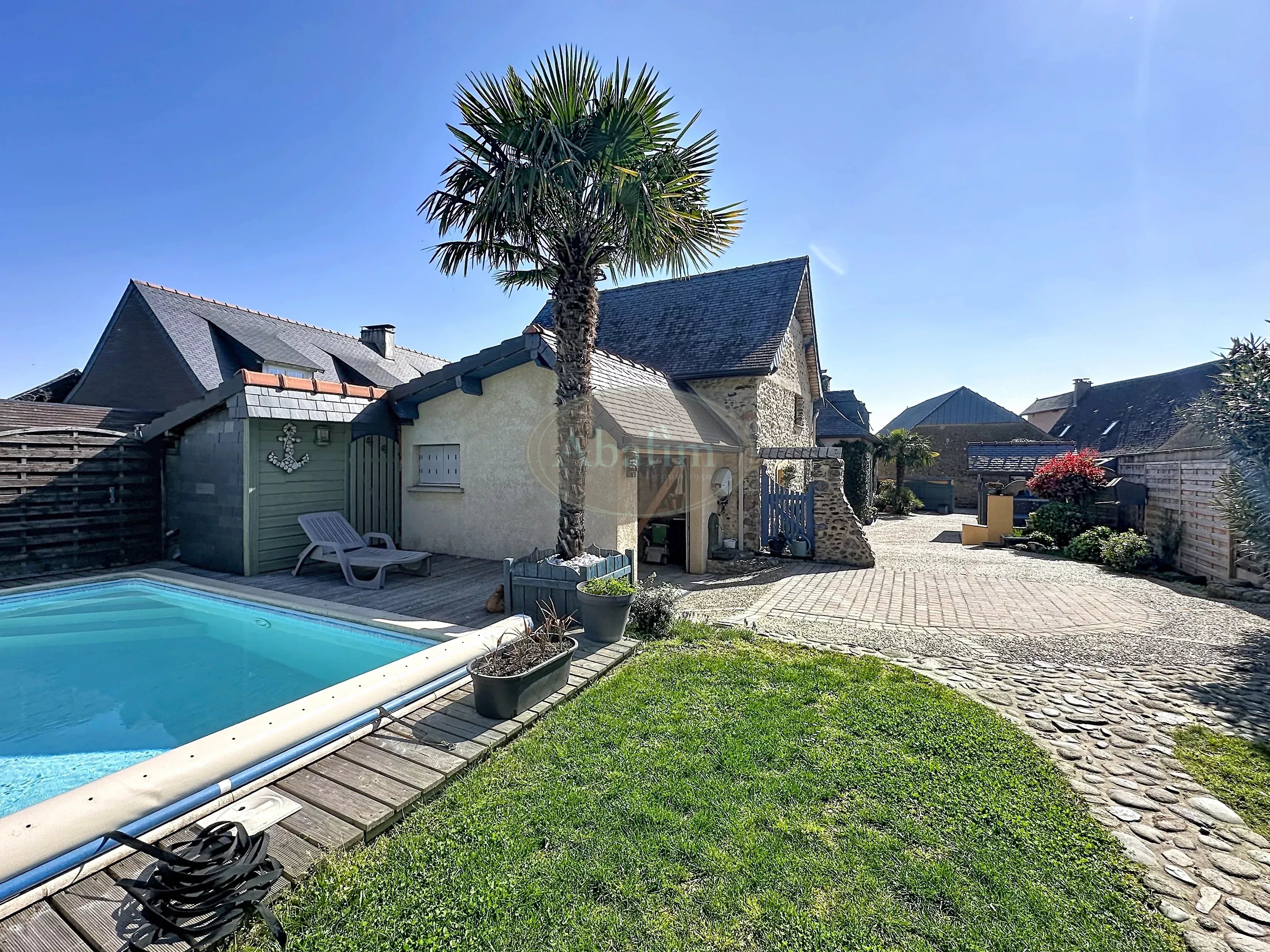 Dépendances : joli garage comprenant une cave à vin (700 bouteilles) communiquant directement avec la maison ; piscine enterrée de 5,50m x 3,50m x 1,30m ; joli local piscine pouvant servir de serre l'hiver ; abri à bois pouvant accueillir 12 stères, couvert en ardoises, atelier et deuxième abri voiture plus moto, local jardinage, jolie terrasse accolée à une cuisine d'été entièrement indépendante et toute équipée ; local barbecue et poubelle ; deux postes à eau ; portail coulissant électrifié.