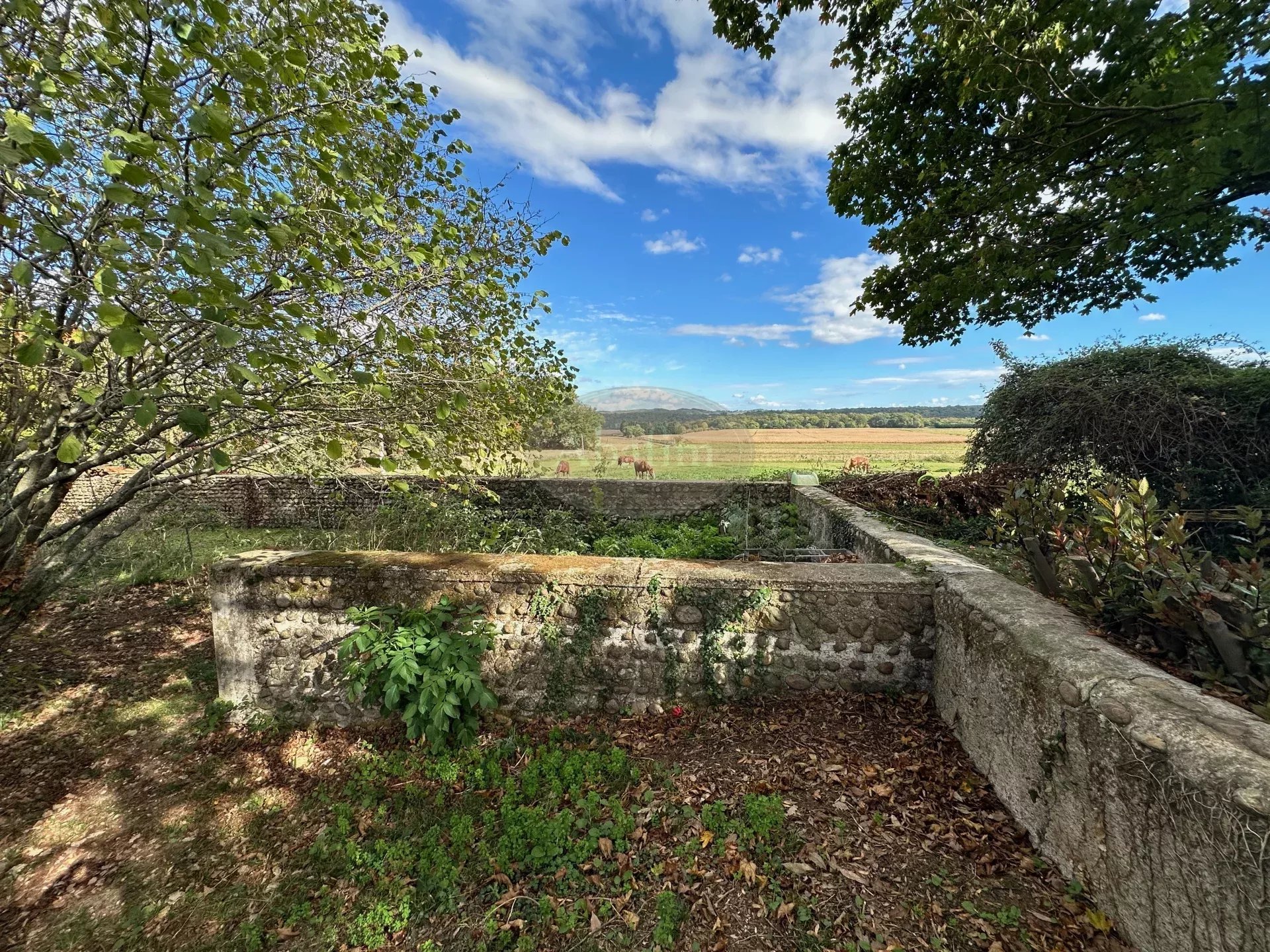 Het volledig omheinde terrein heeft een waterput en wordt begrensd door weilanden.